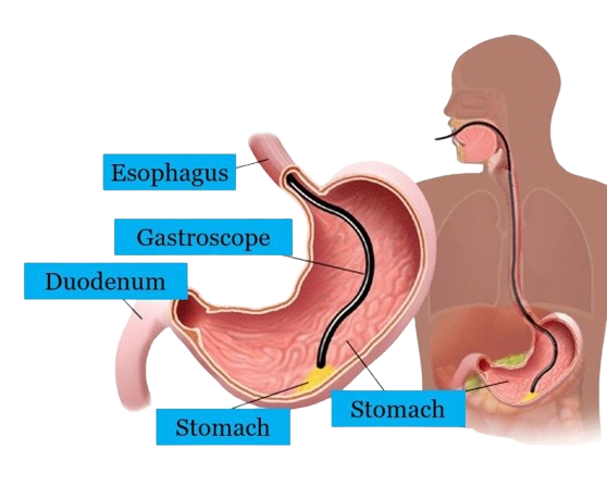 This is done using a thin, flexible camera called an endoscope. It helps diagnose problems like ulcers, acid reflux, bleeding, and stomach cancer.